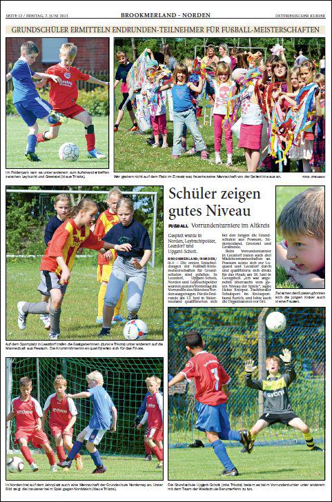 Im Finale standen die Großheider Grundschüler dann der Grundschule Berumerfehn gegenüber. Obwohl auch hier die Großheider klar überlegen waren, kam es zu einem kleinen individuellen Fehler, der der Mannschaft aus Berumerfehn zu einem glücklichen Tor verhalf. Somit mussten sich die Großheider Kicker am Ende mit einem unverdienten 1 : 0 geschlagen geben.